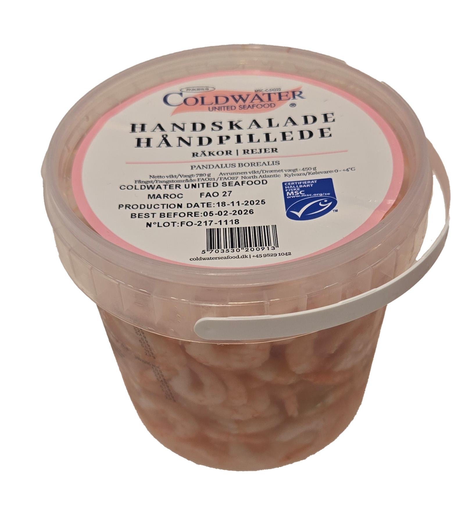 Dansk fangede og håndpillede rejer.